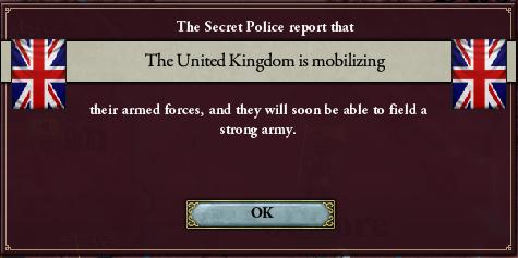 UKはFranceとの戦争が続いており総動員は発動したまま。