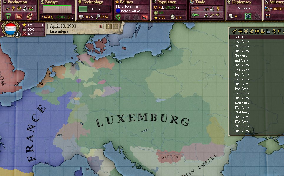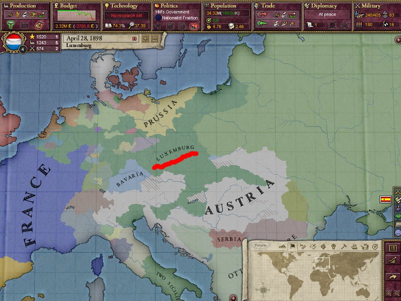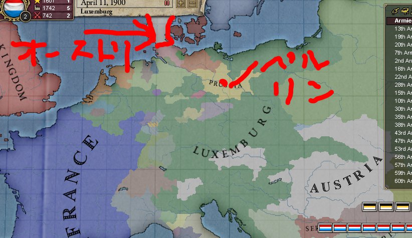 そうだそうだ、もう第何次かも忘れるくらい二面作戦も順調に進んでいたところであったな。第四次ルクセンブルク-プロイセン戦争、第二次ルクセンブルク-オーストリア戦争も我々の完勝だったようだな。