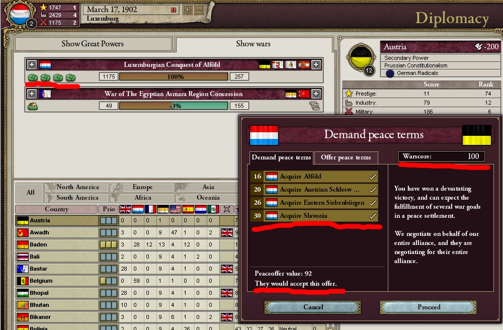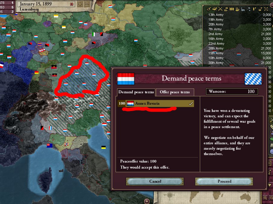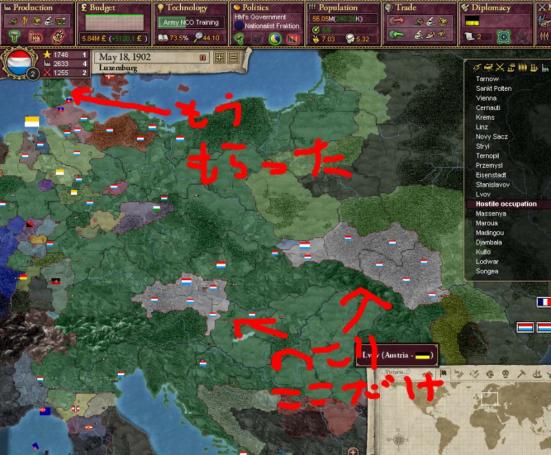 閣下……だんただん面倒になってきましたね。要求した土地を受け取り和平しました。第五次ルクセンブルク-オーストリア戦争の終わりです。