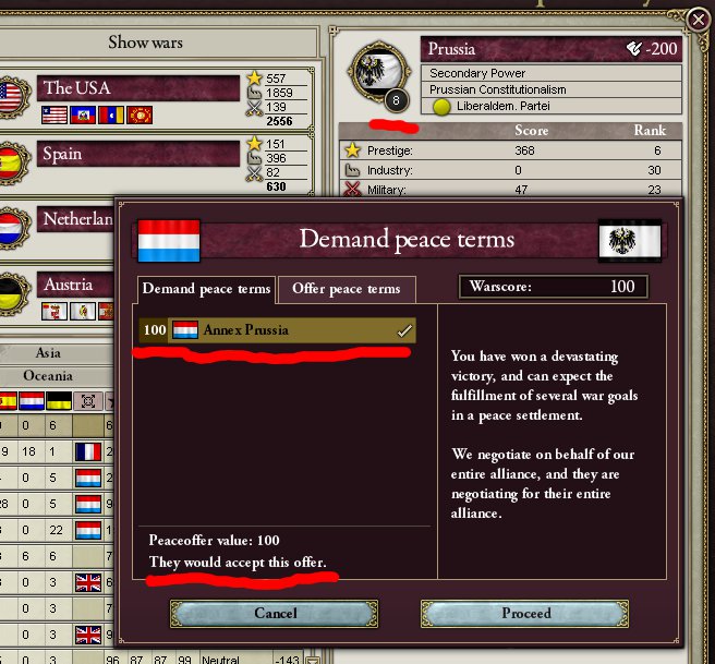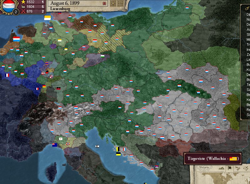 はは。首都以外は全部貰っておきました。あと、オーストリアも。これで第六次ルクセンブルク-プロイセン戦争が終結して、第四次ルクセンブルク-オーストリア戦争も終わって……。