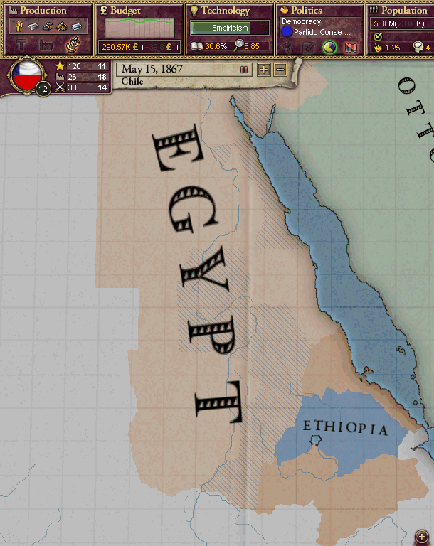 5月15日、エチオピアは、軍縮と賠償金支払い及びアスマラ州、Mahajanga(マハジャンガ)州、Negele()州の租界化という我が国の和平提案を受け入れました。現在、我が国の序列は12位です。獲得したアスマラ州、マハジャンガ州、Negele州では、果物、穀物の他、貴金属、肉牛、コーヒーを産出します。