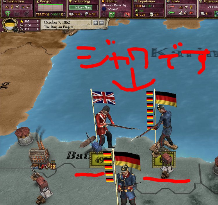 どうやらドイツ領ジャワ島で戦争してるらしく、戦況を気にしていたら優しいドイツさんは、観戦用として同盟まで結んでくれました。