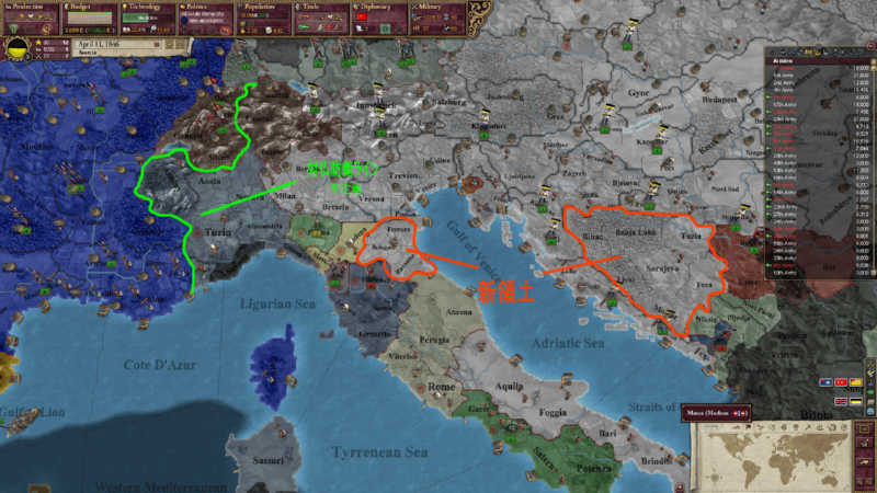 BBR的に高い買い物が多いオーストリアだが、戦後まもなく、CBが来たので教皇領フェラーラ、オスマン領ボスニアを併合した。やったね!