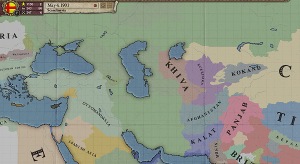 それに加え、ロシア、オスマン帝国、南アメリカの全ての国を影響圏に治め、三大陸にまたがる大帝国となったのだった