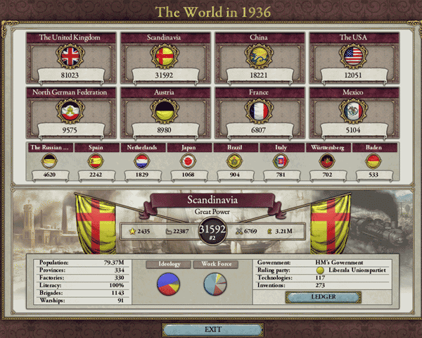 スカンディナビアの最終総人口は3億1700万人だった、実にロシアの倍近い人口の大国となったが、ほとんど領土を拡張していないオーストリアの1億4千万人もすごいものである