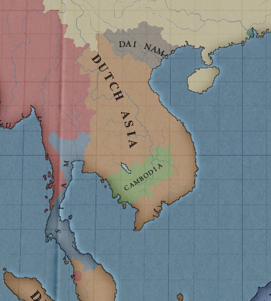 宣戦布告と同時に我が国の部隊はダイナムへ上陸を開始しました。ダイナムはすでに中南部のVinhlong州およびThanh Hoa州がオランダの植民地となっており、北部のCao Bang州のみの1ステート国家となっているので、今回の戦争目的は保護国化です。