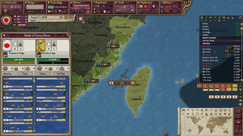 ジョホール近海で警戒中のわが戦列艦艦隊と朝鮮海軍が交戦したとのこと。