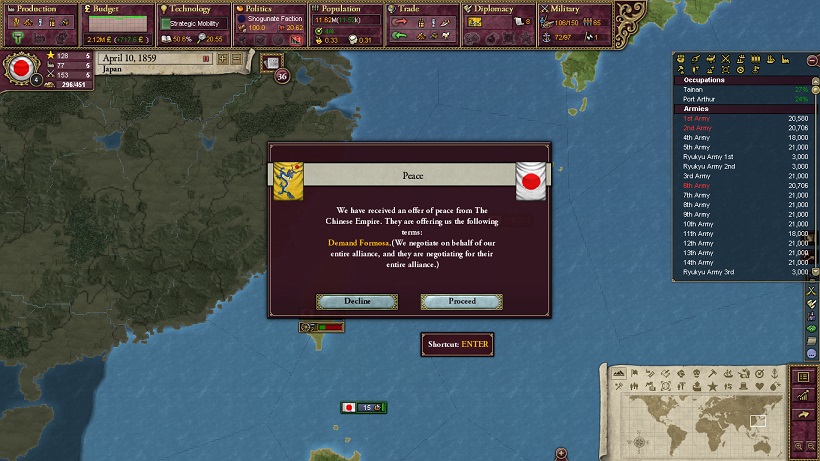 ダイナム軍に多大な被害を与えたらしく、厭戦感情War Exhaustionが順調に増加しているようです。