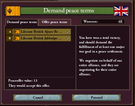 WarScoreに比べてPeaceoffer Valueがかなり低いですが、これに2点上乗せしても要求が受諾されず