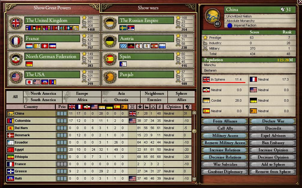 夢から覚めると、次の日からパンジャブが非文明国の頃に戻りUKと共にChinaを蹂躙する夢を見ました。