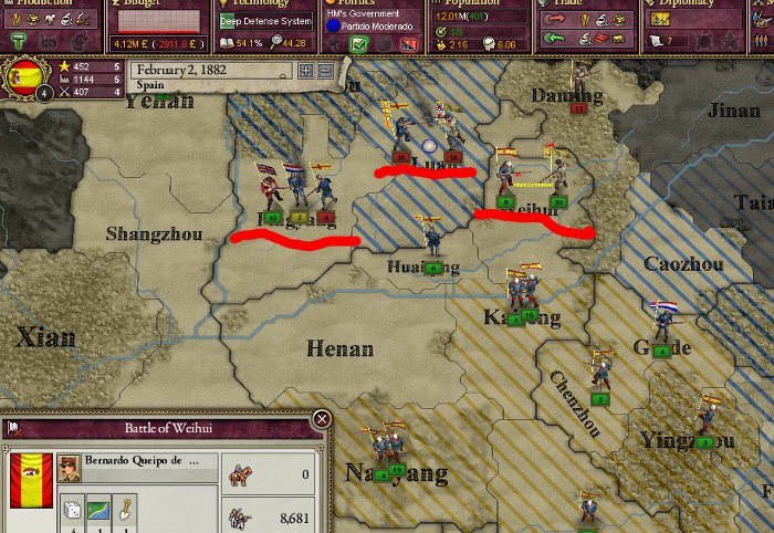 危惧していたイギリスの介入もなく、スペインの第二次対中戦争は無事に進む。中国は予想以上に弱く、割譲させる予定の土地の占領も順調に進んでいく。すると、戦争中とは思わないほどVCは和やかなに進むなかで、スペインとオランダの間で中国の割譲地のやり取りが進められる。