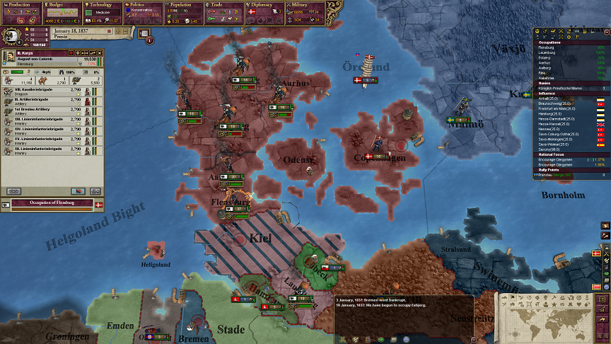 1836年11月5日にデンマーク戦を始めるよ。全軍で一気に占領するからそんなに時間はかからないだろうね。
