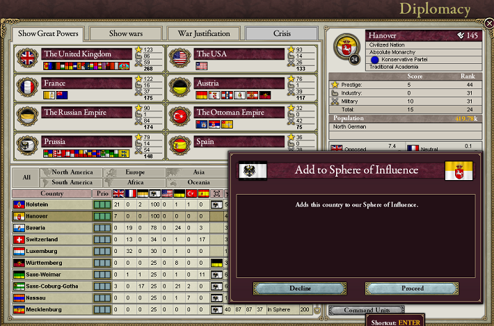 やっぱりそうなるか。そうすると、外交戦争はザクセンが第一目標、ハノーファーが第二目標だね。