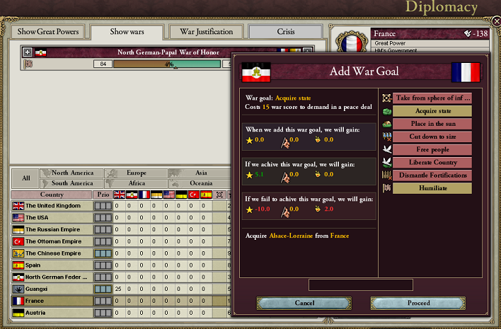 フランスへのAcquire StateのCBが完成。次は教皇領へのHumiliateのCBだな。