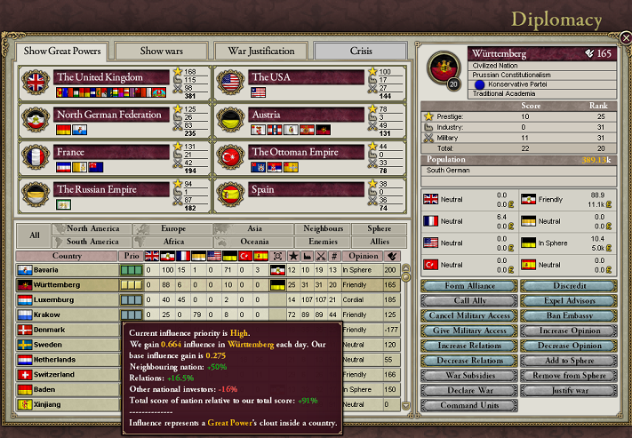 そうそう。メイン画面でどこかの領土を右クリックすると、その国の外交画面に直接アクセスできる。プロイセンの間は影響25の小国がリストに乱立してるからお目当ての国の外交画面を呼び出すのが楽になるよ。