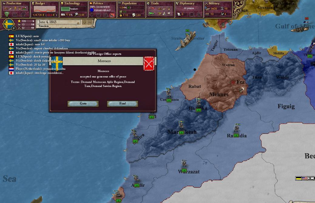 モロッコを侵略しながらスウェーデンは平和な日々を過ごしていた。