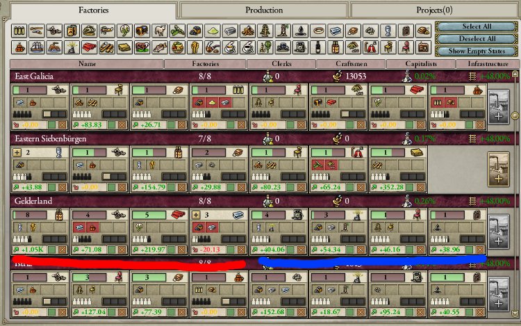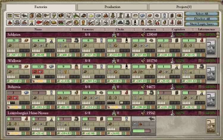 それからドイツ統一を目指した1894年ごろから戦時体制として倒産を防ぐ国家資本主義に移行、それを機に空き地には電子部品や電話など最新の工場を建設したので、本国付近はそれらの折衷といったところでしょうか。