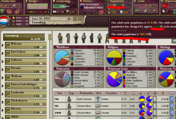 そもそも内陸国のルクセンブルクがなんで最初から海軍技術持ってるんだよ!って話ですよね。ドイツ人国家扱いだからですが……。ってことで人口編どうぞ。
