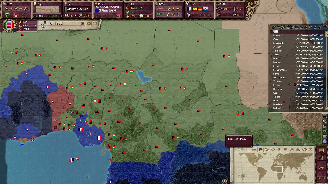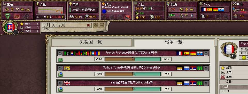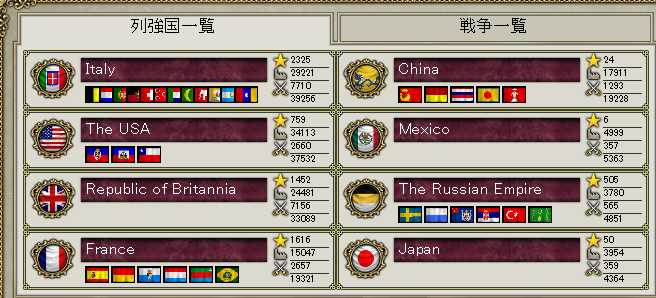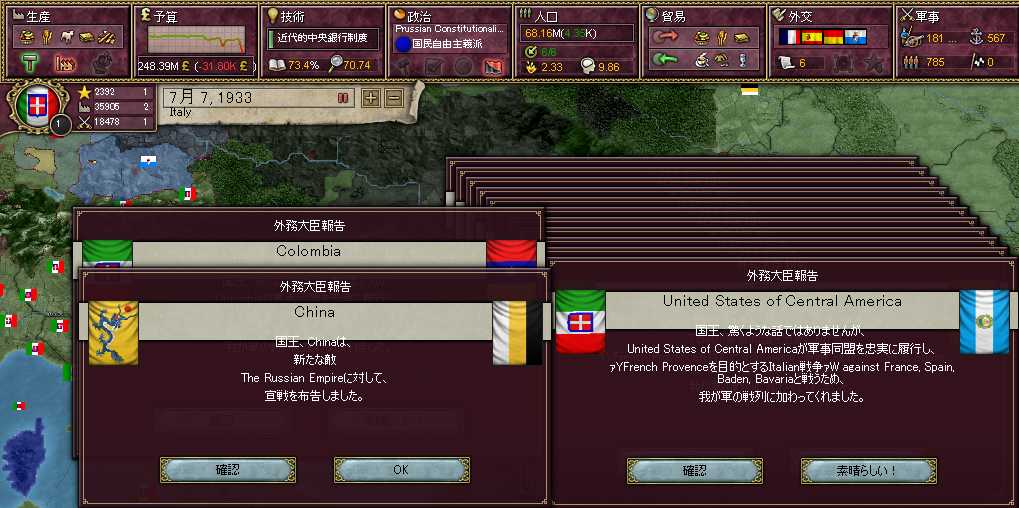 イタリアは全同盟国に宣戦要請を行った結果、汚名により勢力圏以外の国との同盟は全てきられ