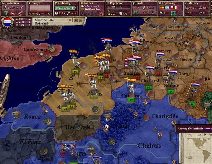 SSを見るとオランダ進行の際スペイン本土がかなり手薄になっているオランダがスペインに完全勝利する可能性はここにあったと思う