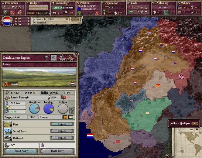 初動はなかなかうまくいったほうだろうパンジャブを取っていなかったら中盤の列強を維持することができなかった