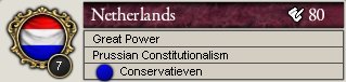 了解しました。ところで、オスマントルコに代わって列強となったオランダは立憲君主制で、政権与党は保守派(Conservertieven)です。