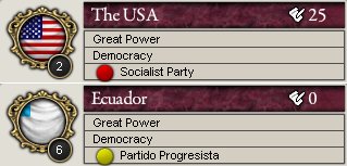 USAとエクアドルで政権交代があり、USAでは社会党(Socialist Party)という社会主義政党が、エクアドルではPartido Progresista(進歩党)という別の自由主義政党が政権与党となりました。