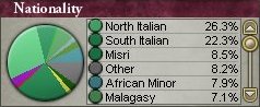 北イタリア人と南イタリア人とで半数弱といったところか。