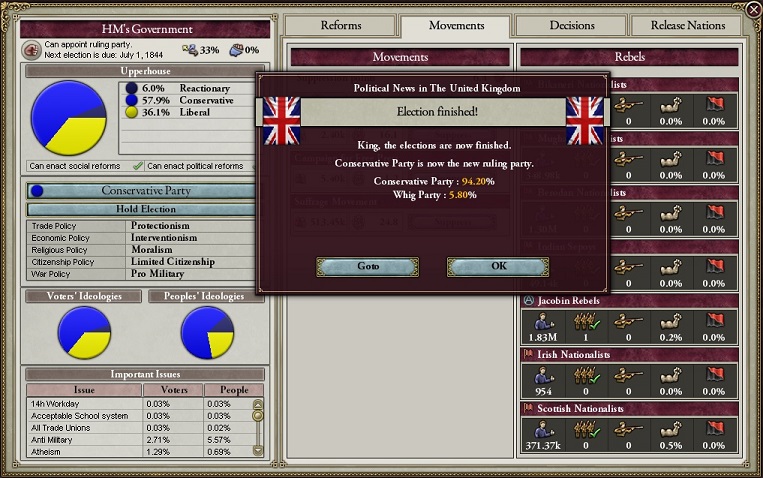 ついでに穀物法廃止のディジションもやっておいて、国民の急進性を下げておきました。