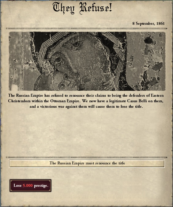 ロシアへの侮辱開戦事由をもらったけど行使はしないわ。だけどこのことは忘れないわよ。