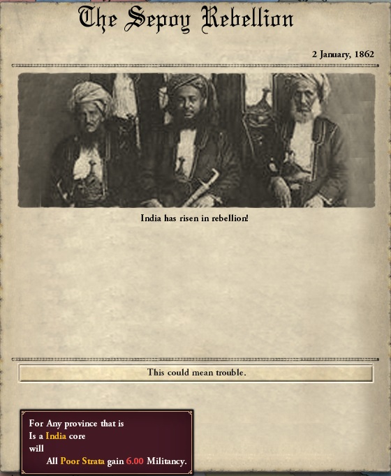 あと、セポイの反乱で急進性があがったので社会政策を実行しておいたわ。