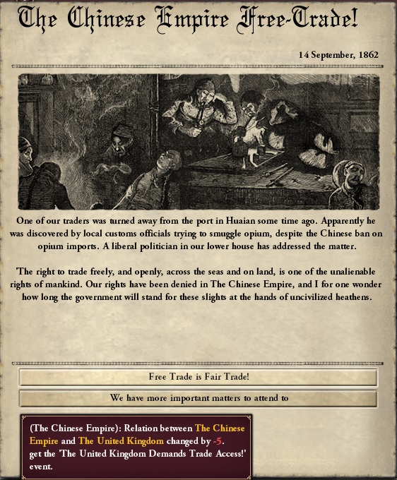 いまやイギリスは世界中で自由貿易の守護者として振舞ってるわ。