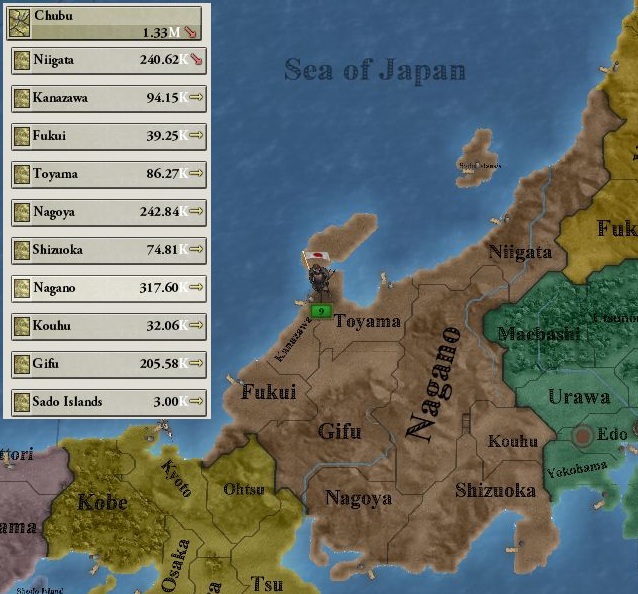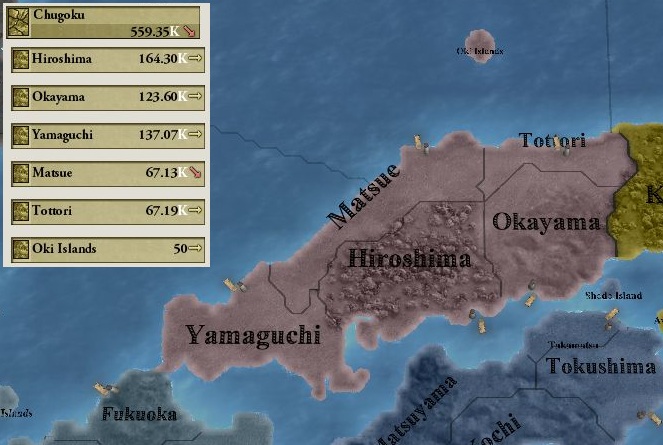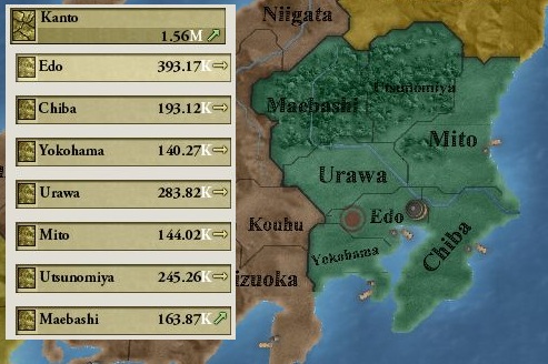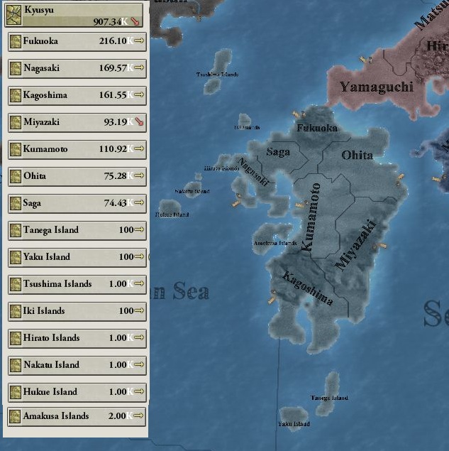 - 九州の15プロヴィンスは多すぎるから、南北で分割したほうがいいかと。あと、中部も北陸と東海で分割したり。でもそれすると、ゲームを大きく変えなきゃいけなくなるが。 --