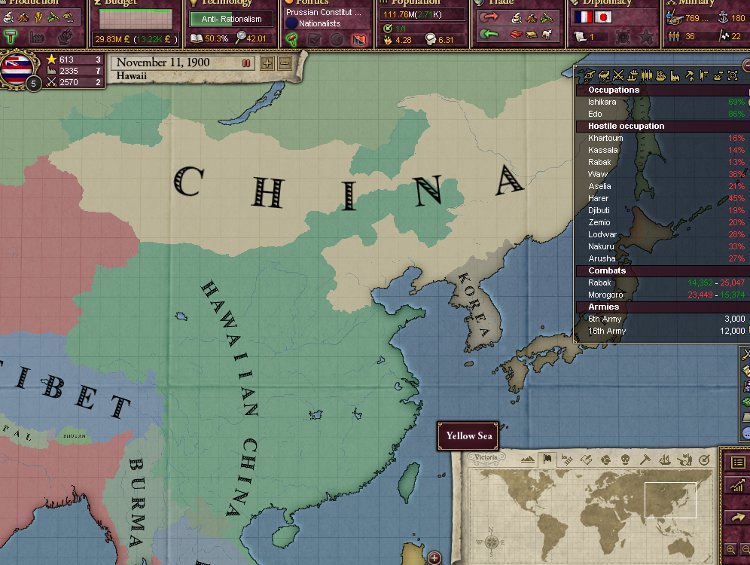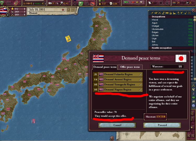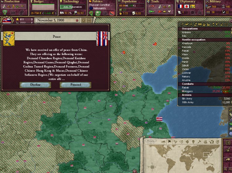 日本も4ステート割譲で折れたぞ。江戸さえ占領できればすぐに片付くようだな。部隊を撤退したら、すぐに併合要求で再戦するのだ。