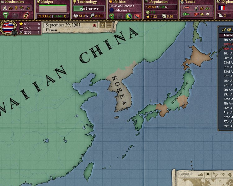 これで我が国も海軍大国への道を歩むことができるな。しかし、それはあくまでも軍事点スコア目当ての話。米国への整地は……それなりに進んできたかな。