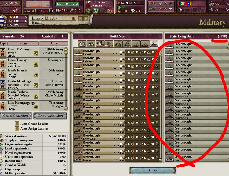 それから、ちょっと前の話ですがまとめて研究していた海軍研究の成果が出て遂にドレッドノートの発明が来ました! 手始めに778隻ほど発注しておきました。