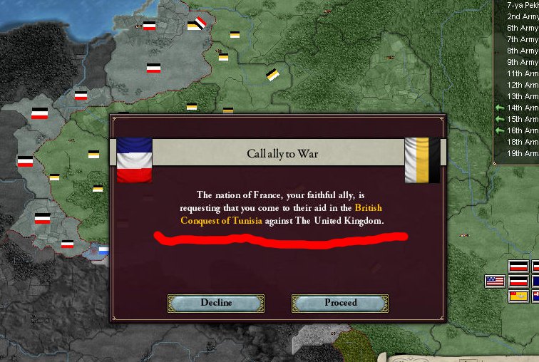 イギリス参戦って1年経ったのにどうやってんだよCB期限切れたんじゃないのかよ……。ランダムCBは1年しかないと思っていたのでフランスはCB遅延(ウィンドウを開きっぱなしにすると伸ばせる)を疑ったが、違うらしい。