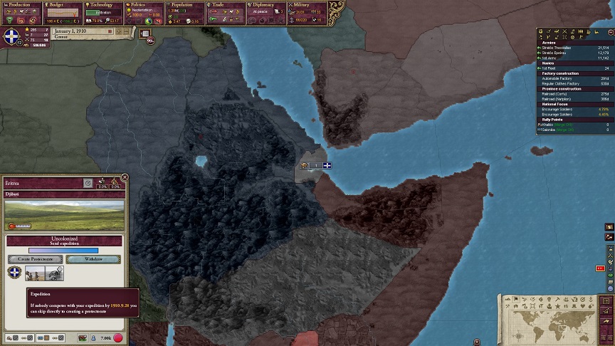 いつの間にかスエズ運河がドイツの手によって建設されていたようなので、ギリシャも初めての植民地をジブチに建設する。