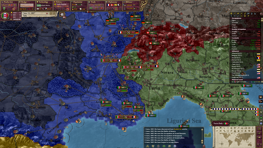 ふっふっふ。わがイタリア軍もなかなか立派じゃない? もうフランス国境の戦いを抑え込みだした。