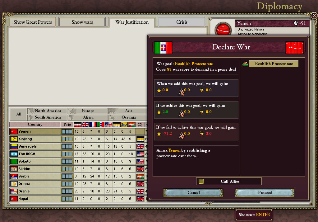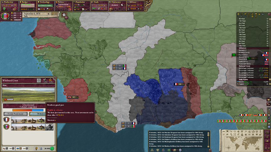 まず、植民活動にはCP(ColonialPower)が必要である。これは海軍の艦船によって増加していく。これを大幅に増やすための秘策は「ポルトガルの翼ー王立植民地軍ー」というAARで触れられている。