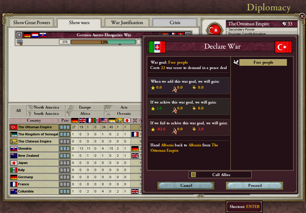まぁ、こんな小国の独立に全体を危機に陥れる必要なんてないもんね。でも、この戦争はきつかった。陸軍技術の差が詰められてる気がする……。