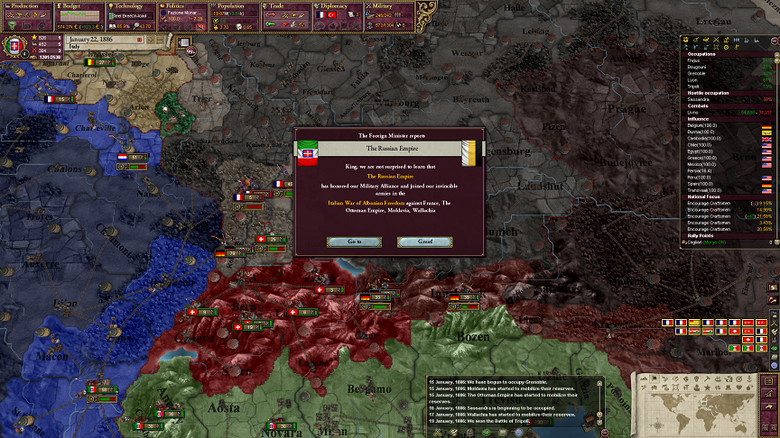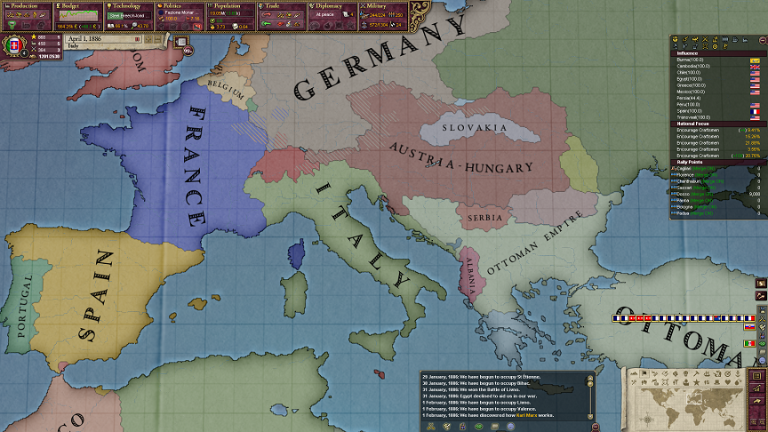 よし。地中海沿岸諸国のだいたいを勢力圏に入れたぞ。