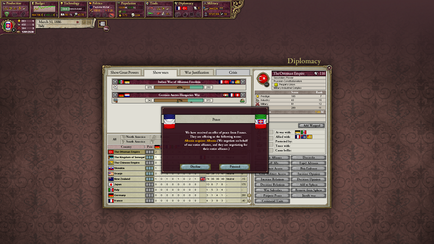 フランス、オーストリア、トルコの勢力はいろんなところから攻撃を受けてるんだね……。かわいそうに。