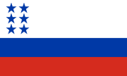 ロシアの白青赤の三色旗をベースに、ロシア領カナダ時代の6つの州*2であるAlaska、Yukon Territory、Russian Columbia、Manitoba、Saskatchewan、Northern Territoryを表わす6つの青い星を白地に配した国旗。*3
