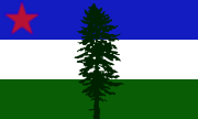 青白緑の三色旗にベイマツ(別名ダグラスファー)と社会主義の赤い星を配した国旗。*4
