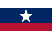 ロシアの白青赤の三色旗をベースに、青の帯を広くして中央に白い星を配した国旗。青が白と赤よりも幅が広いのはプロレタリア独裁制(赤)にも寡頭政治体制(白)にも与しないということを意味している。*6