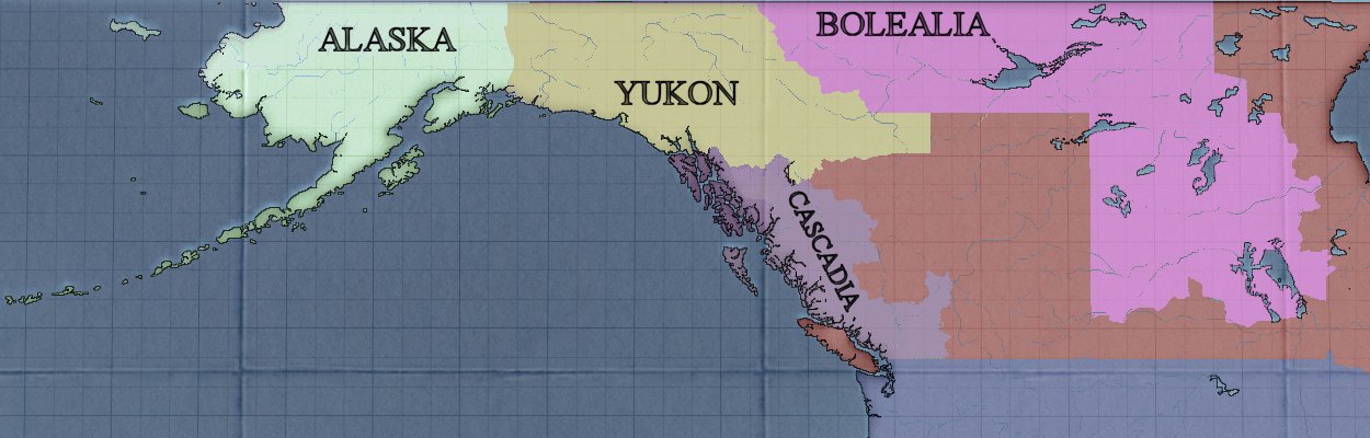 2度の政変に揺れたロシア本土との結びつきが弱まっていたロシア領カナダでは独立の機運が高まっていた。そして、それはアラスカ共和国の独立へとつながった。しかし、新たに誕生したアラスカ共和国においても、ロシア本国と大差ない寡頭政治体制だったために、各地で反乱の火の手が上がった。中でも、アメリカ人民共和国に隣接する南部においては、アメリカ人民共和国の支援を受けて社会主義者・共産主義者たちがカスカディア人民共和国の建国を宣言し、これに各地の社会主義者・共産主義者たちが呼応した。この状況を見て、チリ、英国をはじめとする国々が社会主義革命の鎮圧に介入した。英国が介入した東部においては、英国領カナダに隣接し、英国系住人が多かったので、英国系住人によってボレアリア共和国の建国が宣言された。さらに、寡頭政治体制にもプロレタリア独裁制にも与しないロシア系住民は、チリ・フランス・オランダ・コロンビア等の有志連合によって支援され、ユーコン州を中心としたユーコン共和国を建国した。