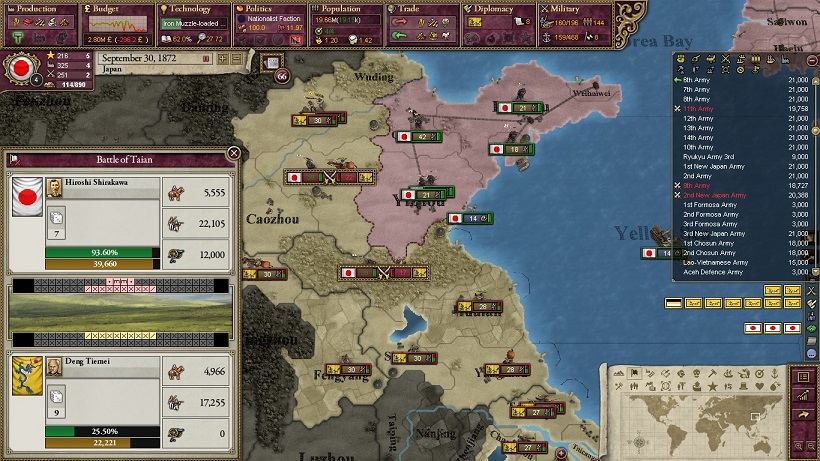 山東方面の軍は防衛的に配置しますが、陽動として江蘇ではなく、河北方面に侵攻します。