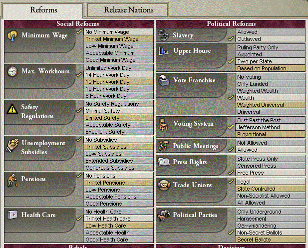 戦争が落ち着いたら、Politics画面から政党をstate capitalism の政党に変える。