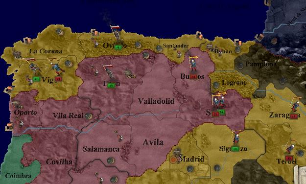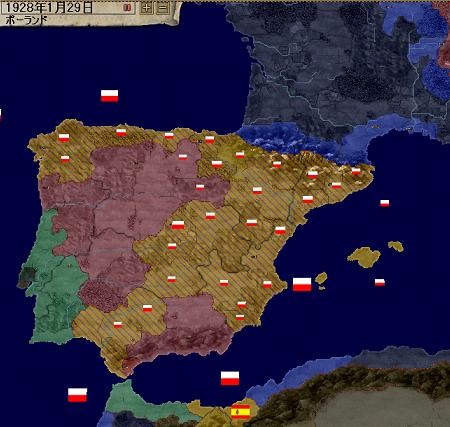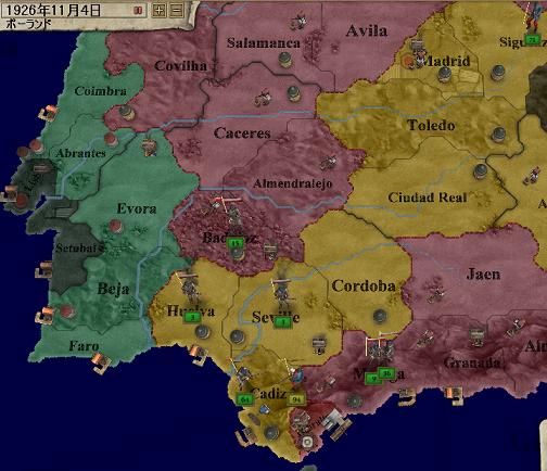 戦力を遊ばせているのもなんなので、スペインにも宣戦しました。